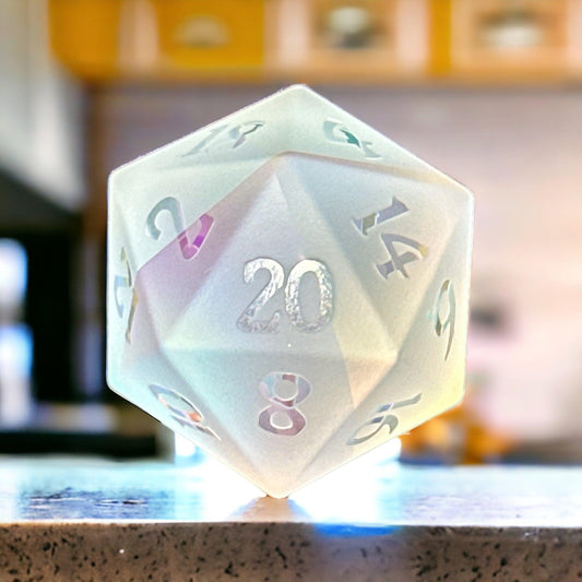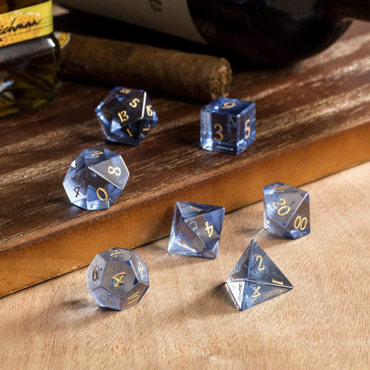 Dive into the pristine beauty of Living Skies Games' Glass Dice Collection, a perfect fusion of clarity and color. Each dice set is a masterpiece, meticulously crafted from transparent glass, with fine numerals etched onto the surface, adding a ghostly elegance to your gaming sessions.