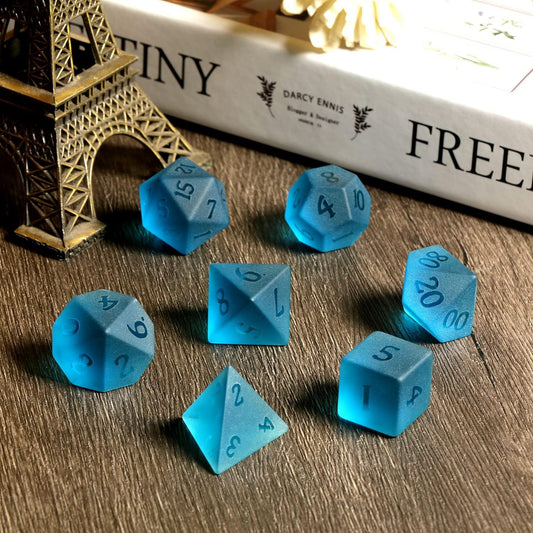Glacial Whisper Frosted Blue Glass Dice Set