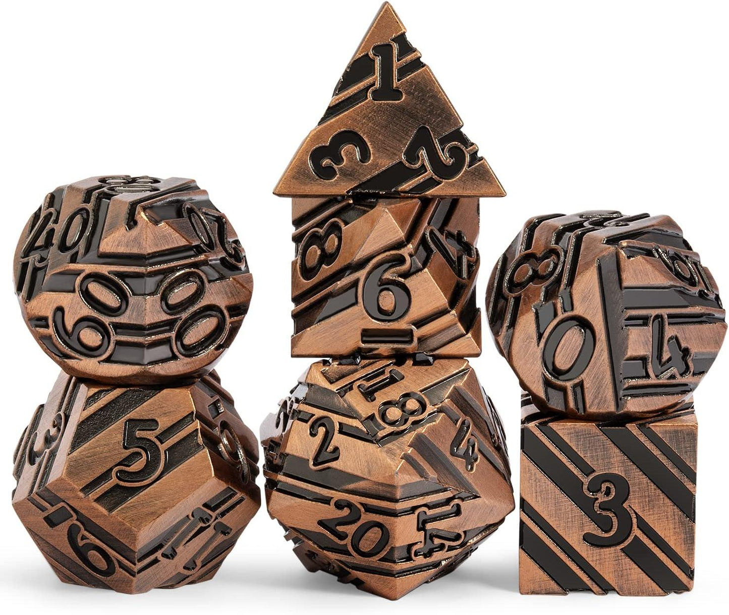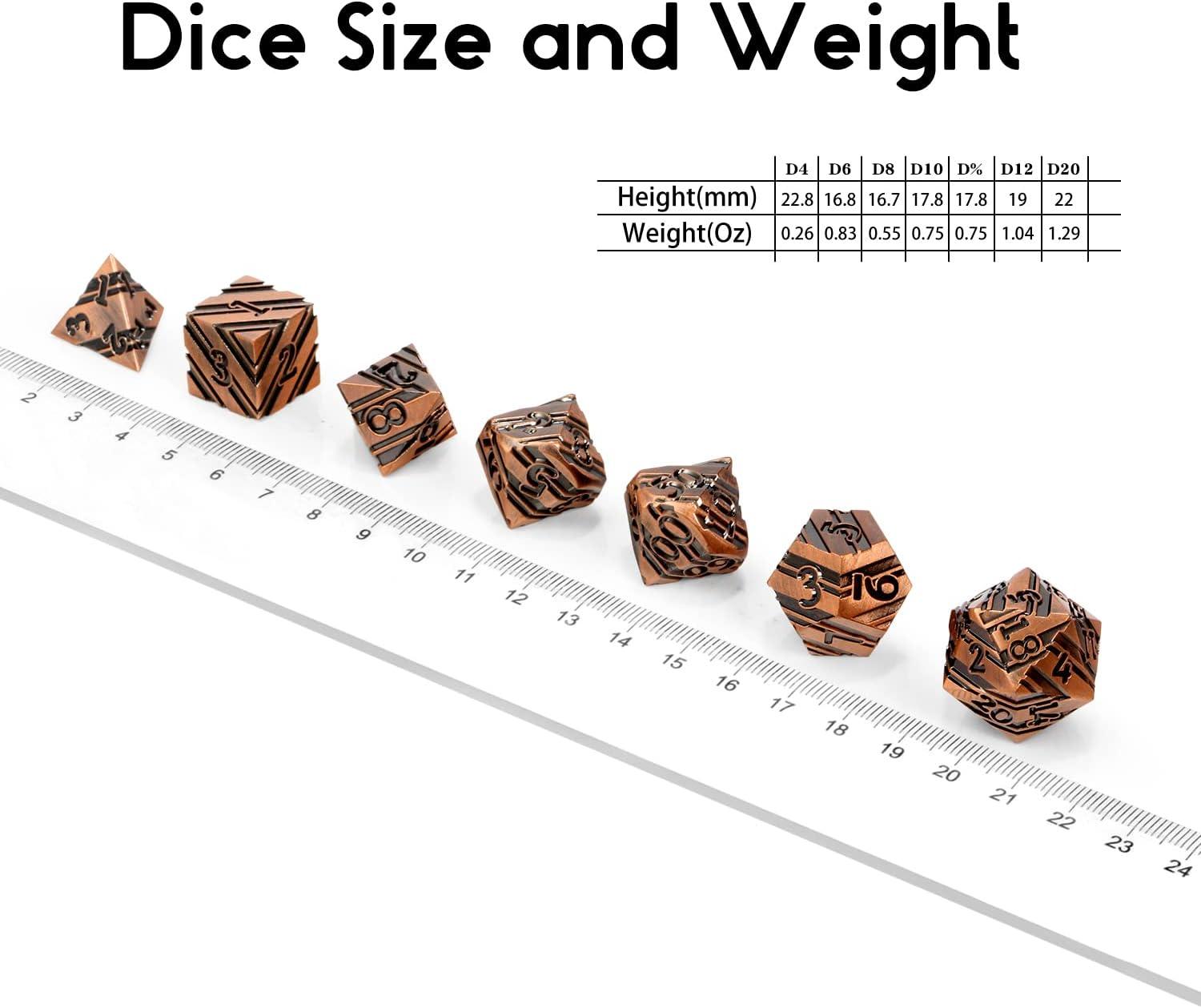 When these dice roll across the table, they carry with them the weight of history and the promise of fortune. The heft of metal in your hand is reassuring, grounding each decision in the tangible world, while the coppery glow catches every eye, commanding respect and awe. The dark, engraved numbers offer clarity and contrast, ensuring that each roll is as decisive as it is impressive.