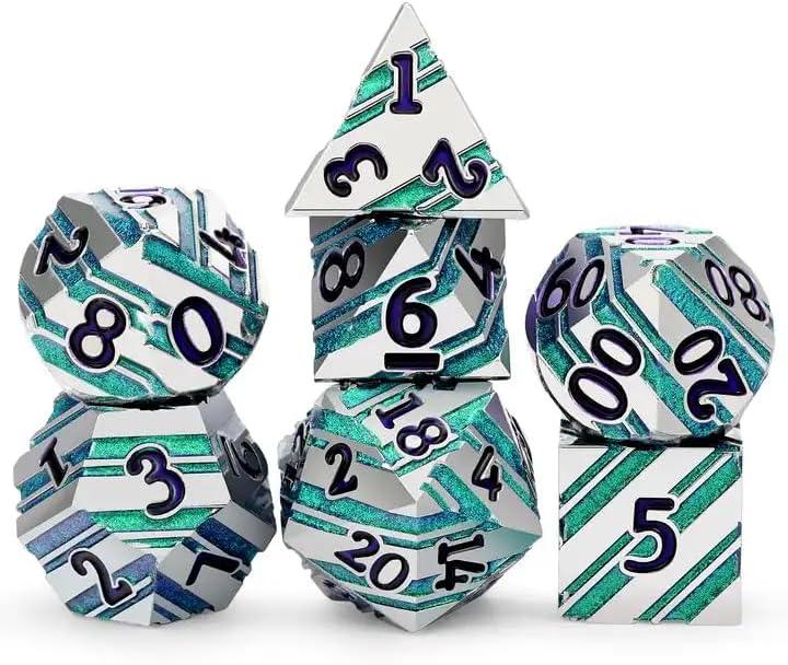 Crafted for resilience and longevity, these dice are a dependable companion through countless gaming sessions. Their robust construction ensures that they endure the tests of time and play, maintaining their enchanting appearance. The Emerald Conduit Stripe Metal Dice Set is an exceptional gift for the gamer who draws inspiration from the natural world and seeks to bring a touch of its majesty to their tabletop adventures.