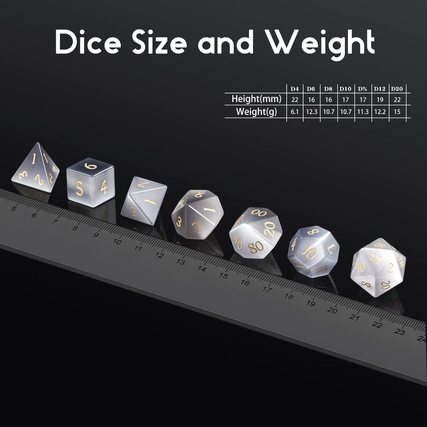 Handling these dice is like touching a piece of the enigmatic natural world. The grey opal's muted yet captivating hues offer a visual journey with each roll, changing under different angles and lighting. In metaphysical practices, grey opal is believed to foster emotional balance and stimulate creativity, making these dice not just a gaming accessory but also a source of inspiration.
